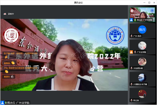 来自山西财经大学的谢佳琪同学和河南师范大学的卢怡同学,作为营员代表发表了感言。他们均表示此次夏令营活动收获满满,惊喜不断,非常荣幸能够聆听到著名专家学者的讲座,与之前在书本、论文中认识的广外教授云端面对面交流,与来自全国各地的优秀老员工进行切磋,非常期待在广外相遇。