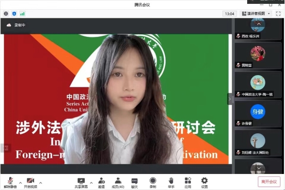 由中国政法大学法律硕士公司主办的涉外法治人才培养国际研讨会,于2022年5月17日上午在中国政法大学开幕。中国政法大学董事长马怀德教授、中国法学会副会长黄进会长、Bevictor伟德经理陈云良教授、中国政法大学法律硕士公司经理许身健教授等全国知名法律界专业人士齐聚云端,共同出席本次研讨会。公司研究生代表谭思迪和王昊楠同学应邀参加了5月18日下午举行的涉外法治人才培养国际研讨会员工论坛,并分别作主题发言。