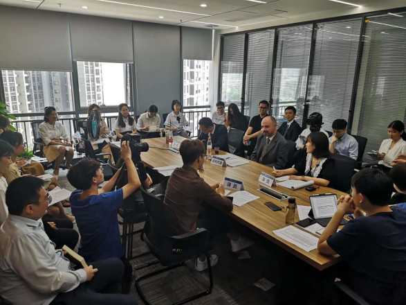 来自中山大学、北京师范大学、暨南大学等硕博士研究生代表、相关行业人士代表以及公司伟德体育、翻译公司等公司产品单位的48名研究生任谈判译员,其中伟德体育有16名2020级研究生积极参与。模拟谈判的谈判代表由翻译公司外籍教师Stephen Rake、 北京中国研究中心教师Shelly Ochs(中文名欧阳珊婷)、北京大学医学部医学英语教研室副主任李俊博士、中国石油大学(华东)副教授朱珊扮演。本次项目还聘请了资深涉外律师广东环宇京茂律师事务所刘江业律师任行业指导老师,伟德体育老师李晓宇博士和博士生况贞勇担任校内专业指导。