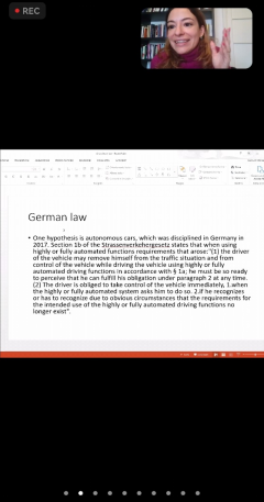 在3月9日举行的第四场讲座中,贝纳蒂教授以“自动驾驶汽车”和“人工智能诊疗”为例,从比较法的角度探讨了当代侵权法与人工智能的互动。她首先围绕介绍了人工智能在自动驾驶汽车中的应用原理,然后比较了美国和德国关于自动驾驶汽车侵权问题的规范路径。之后,她转入医疗服务领域“人工智能诊疗”的应用,比较了欧盟与美国在“人工智能诊疗”侵权问题上立法差异。她强调,针对人工智能应用所引起的侵权争议,需特别辨析人工智能是否具备法律主体身份,并厘清侵权行为与损害结果之间的因果关系与归责原则。