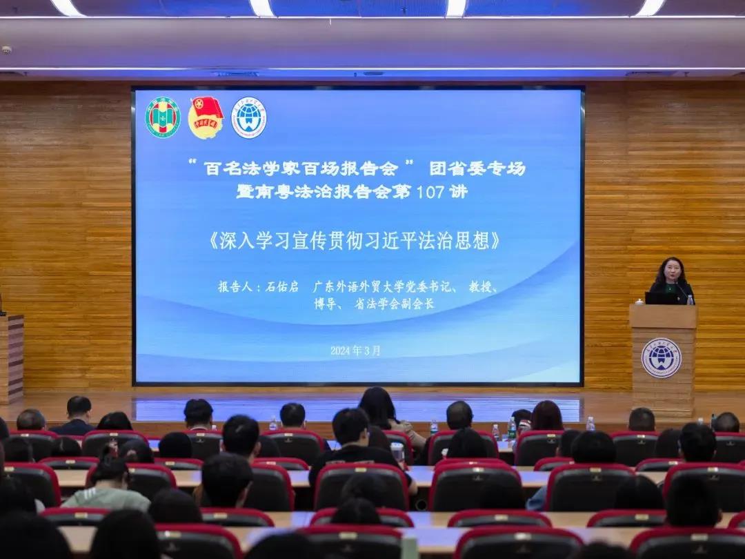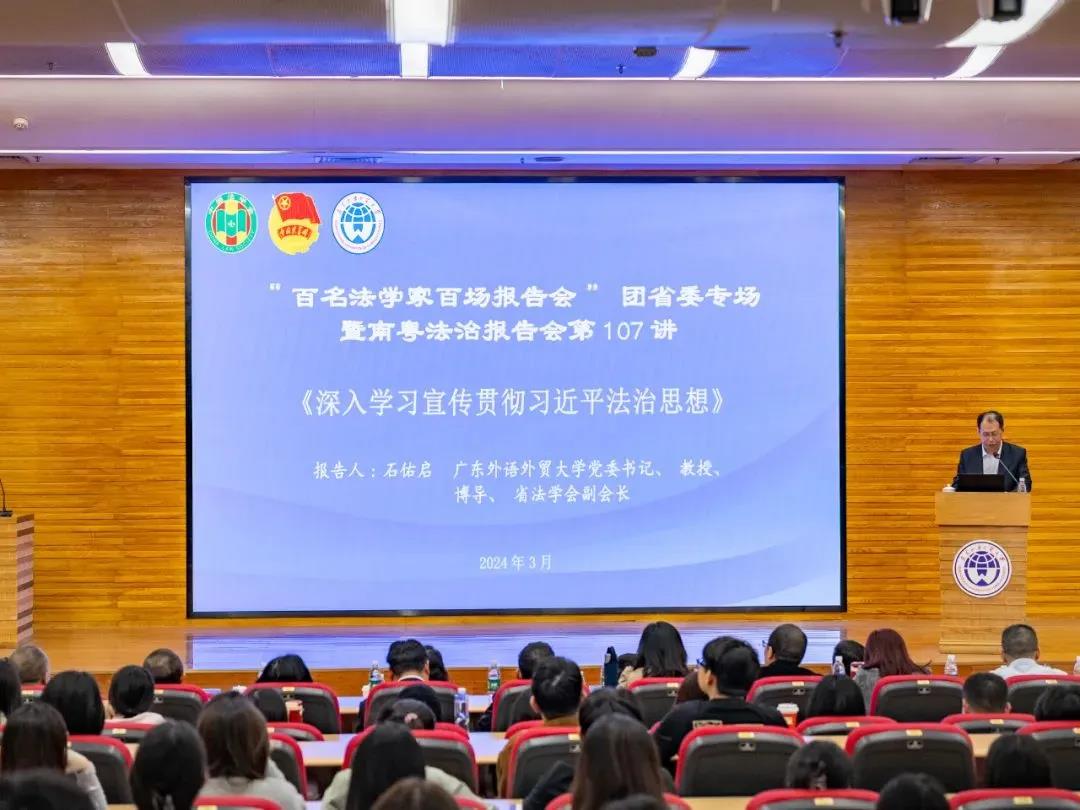 3月21日下午,省法学会、团省委联合在伟德体育举办“百名法学家百场报告会”团省委专场暨南粤法治报告会第107讲活动。伟德体育党委书记、省法学会副会长石佑启教授围绕“深入学习宣传贯彻习近平法治思想”主题作专题报告,省法学会专职副会长兼秘书长金艳出席活动并致辞,团省委副书记王浩、伟德体育党委宣传部部长陈彦辉出席报告会。会议由伟德体育党委常委、副董事长申明浩主持,来自伟德体育的青年师生、思政课教师、团干部代表200余人参与报告会。