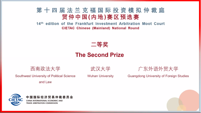 2022年1月19日至21日,由中国国际经济贸易仲裁委员会主办、贸仲香港仲裁中心承办的第十四届法兰克福国际投资模拟仲裁庭贸仲中国(内地)赛区预选赛成功举行。公司伟德体育代表队喜获全国二等奖,赛队队长胡蕴贤和队员邓芷珊获得循环赛“最佳辩手”的荣誉。