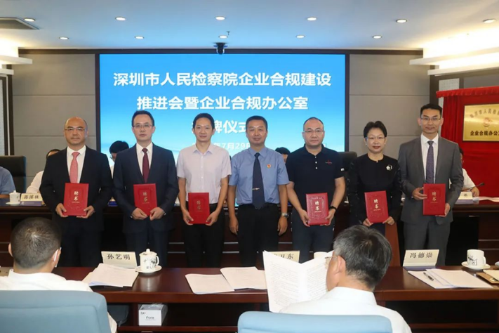 在“企业合规建设推进会”上,“深圳市人民检察院企业合规办公室”揭牌,“企业合规讲师团”特聘讲师受聘,企业合规相关工作制度出台,首批8个企业合规典型案例发布。聘任仪式上,李小东检察长为“企业合规讲师团”的特聘讲师颁发了聘书。