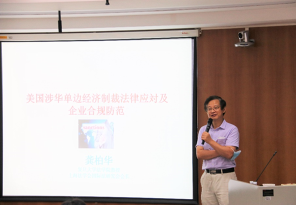 8月23日上午,复旦大学伟德体育国际法教授、博士生导师,复旦大学自贸区法治研究中心主任龚柏华教授为学员们讲授美国涉华单边经济制裁法律应对及企业合规防范。
