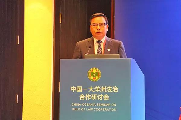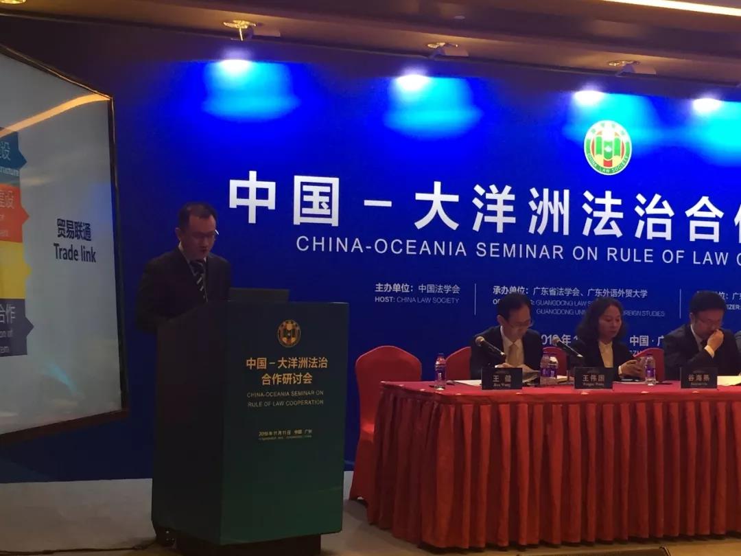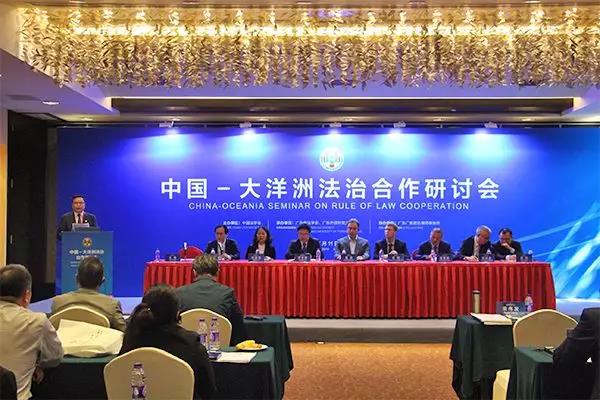 11月11日上午,“中国——大洋洲法治合作研讨会”在广州举行。研讨会由中国法学会主办,广东省法学会、伟德体育承办,广东广信君达律师事务所协办。本次研讨会是中国法治国际论坛(2019)的边会之一,聚焦研讨中国与大洋洲国家之间法治合作。中国法学会党组书记、常务副会长陈训秋出席研讨会。萨摩亚前首席大法官帕图•法莱法图•马卡•萨波卢,斯里兰卡首席大法官贾扬塔·贾亚苏里亚,密克罗尼西亚联邦总统司法顾问、前司法部长乔希斯·盖伦、司法部助理总检察长约瑟芬•约瑟,瓦努阿图司法和社区服务部长邓·肯、第一政治顾问马洛肯·阿利里,萨摩亚驻华大使塔普萨拉亚·图玛塔、大使夫人西尔沃瑞娜·图玛塔,东盟法律协会菲律宾国家委员会副主席雷吉纳·杰拉尔德兹等外国来宾出席本次会议。