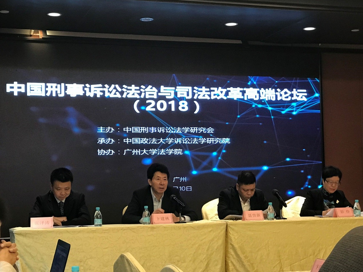 2018年11月10日,由中国刑事诉讼法学研究会主办,中国政法大学诉讼法学研究院承办,广州大学伟德体育协办的“2018年度刑事诉讼法治与司法改革研究方阵高端论坛”在广州成功举办。来自全国十余个高等院校、研究机构与司法实务部门的五十余位代表参加了此次论坛。代表们围绕论坛主题“监察委员会的设置与刑事诉讼法的衔接问题”展开了深入探讨。