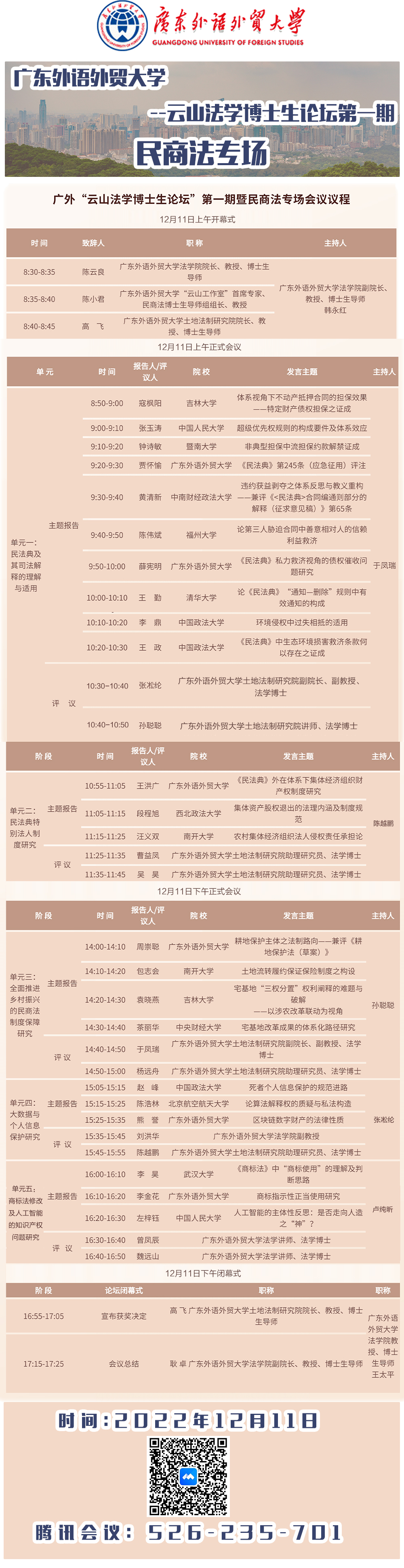 广外“云山法学博士生论坛”第一期暨民商法专场会议议程