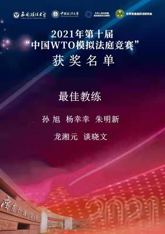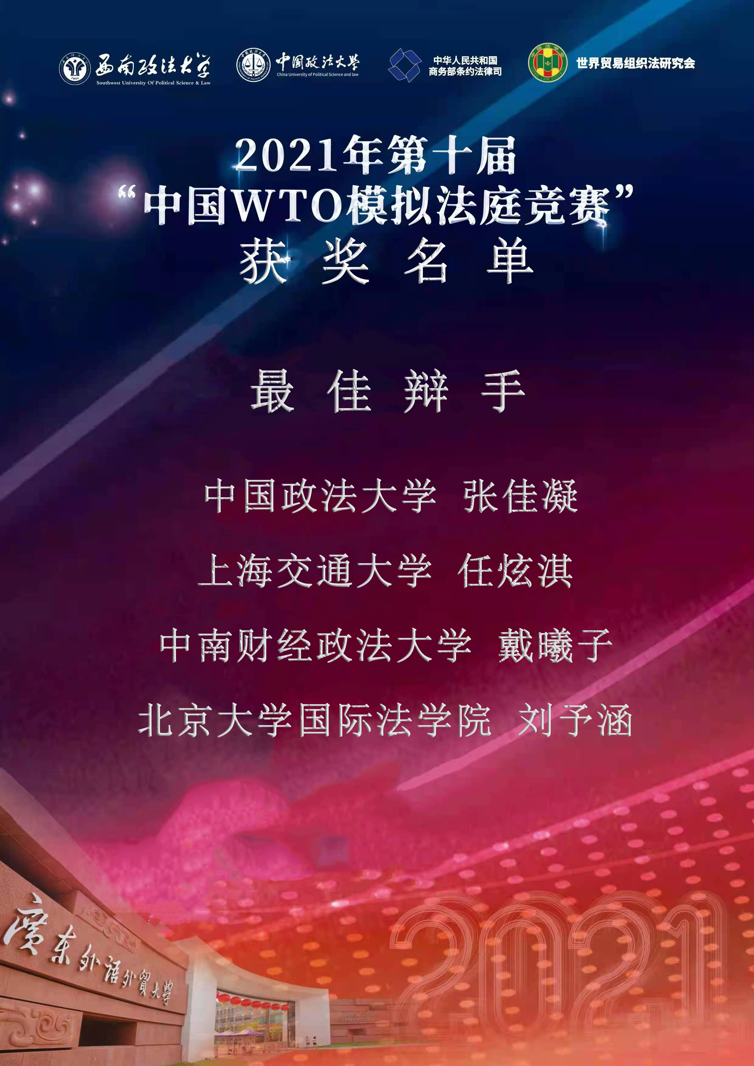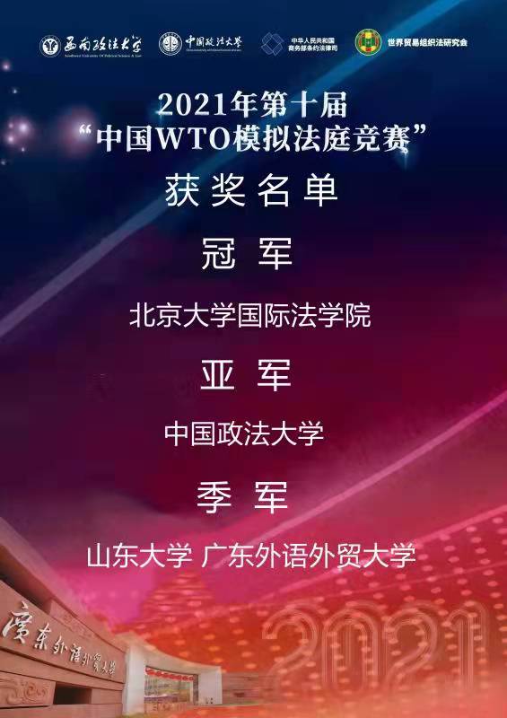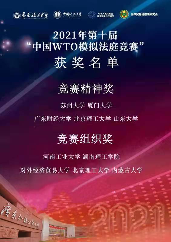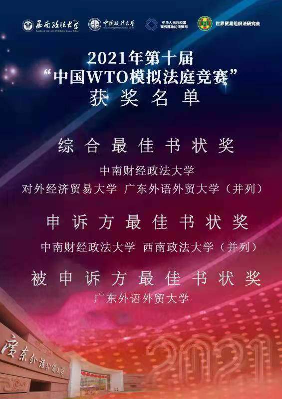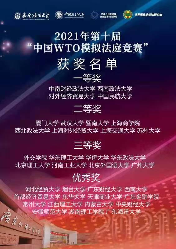 2021年第十届“中国WTO模拟法庭竞赛”获奖名单