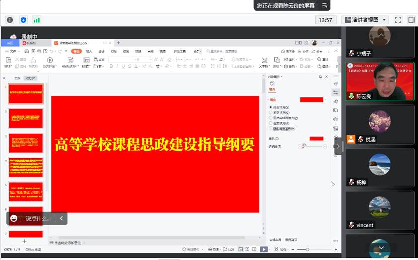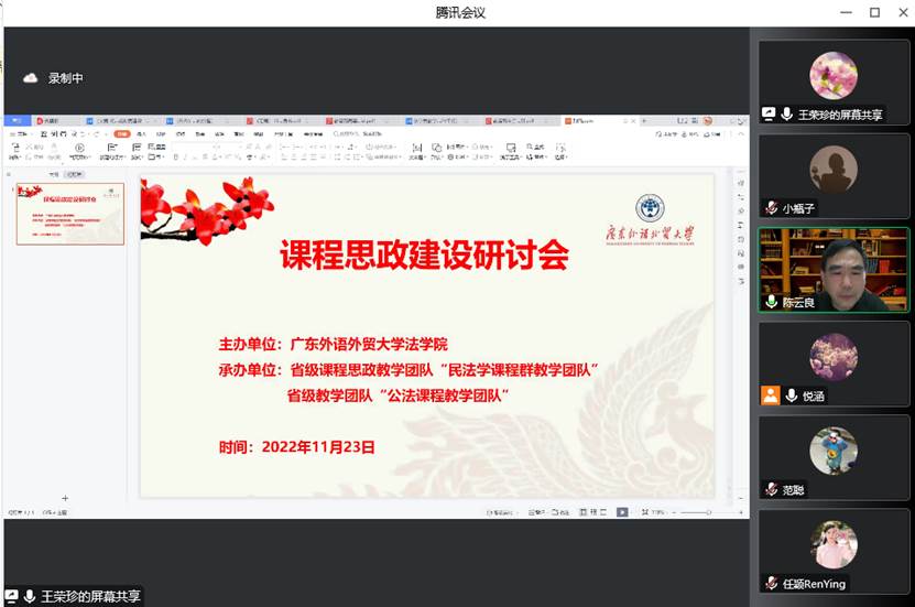 2022年11月23日,伟德体育召开课程思政建设(线上)研讨会,法学学科多位教授建言献策助力课程思政建设,会议由伟德体育经理陈云良主持。