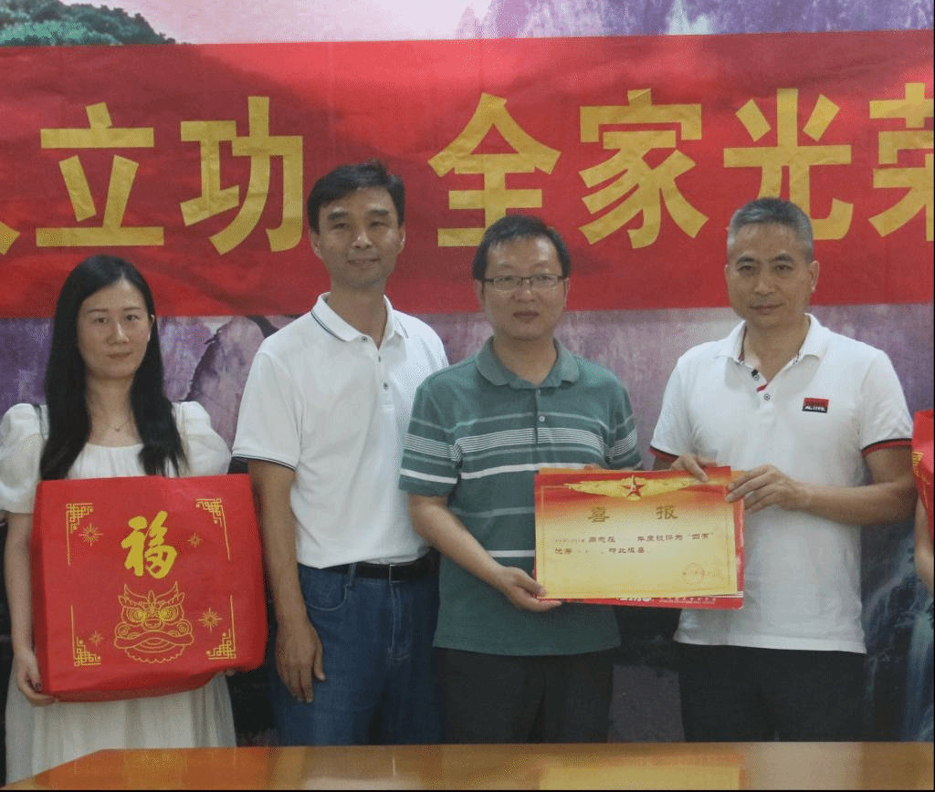 5月31日下午,小谷围街党工委委员、武装部部长何爱高同志带领街退役军人服务站工作人员公司伟德体育新疆籍老员工现役军人木合塔尔·马合木提送来“四有”优秀士兵喜报,公司武装部副部长朱永海、法公司党委副书记范聪、公司办公室主任陈宇、保卫部(武装部)国防教育科张雪参加座谈。