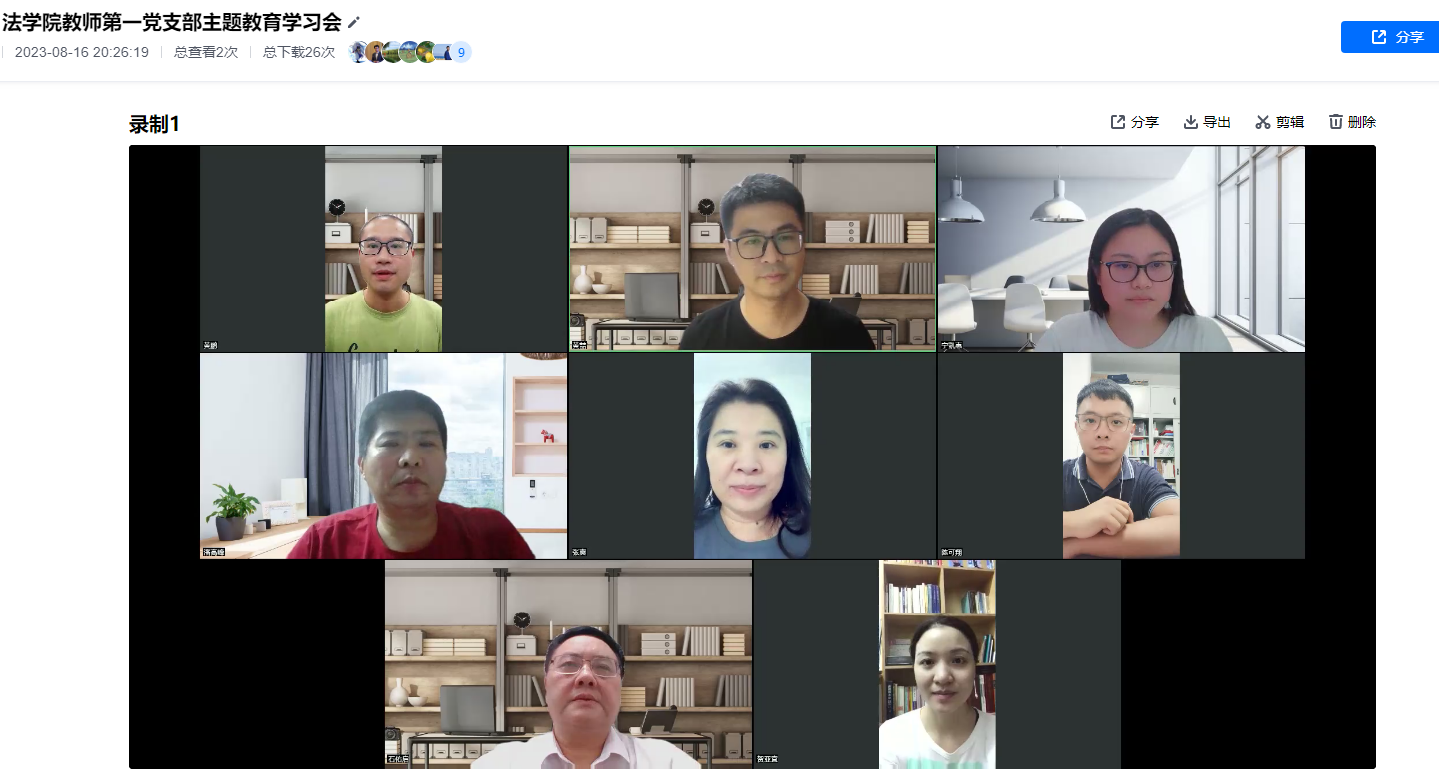 2023年8月16日,伟德体育教师第一党支部在线上举行主题教育学习会,支部全体党员出席会议。学习会由党支部书记黄喆主持。