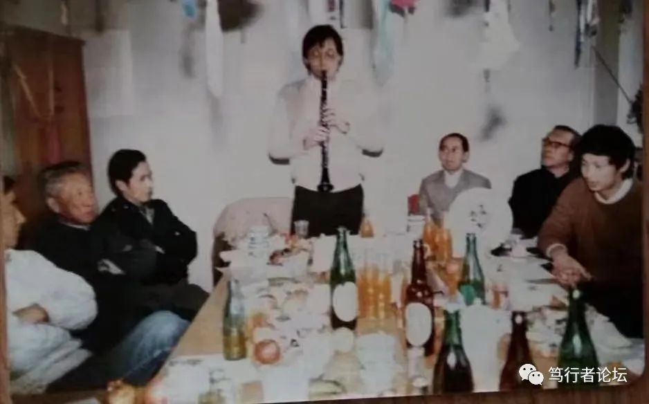 1985年冬,国际经济法教师与85级研究生联欢。左中沈达明教授,左一王林生副董事长,右二冯大同教授,右一潘琪,右三吴兴光。中间吹笛者美国商法授课教师赵博士。
