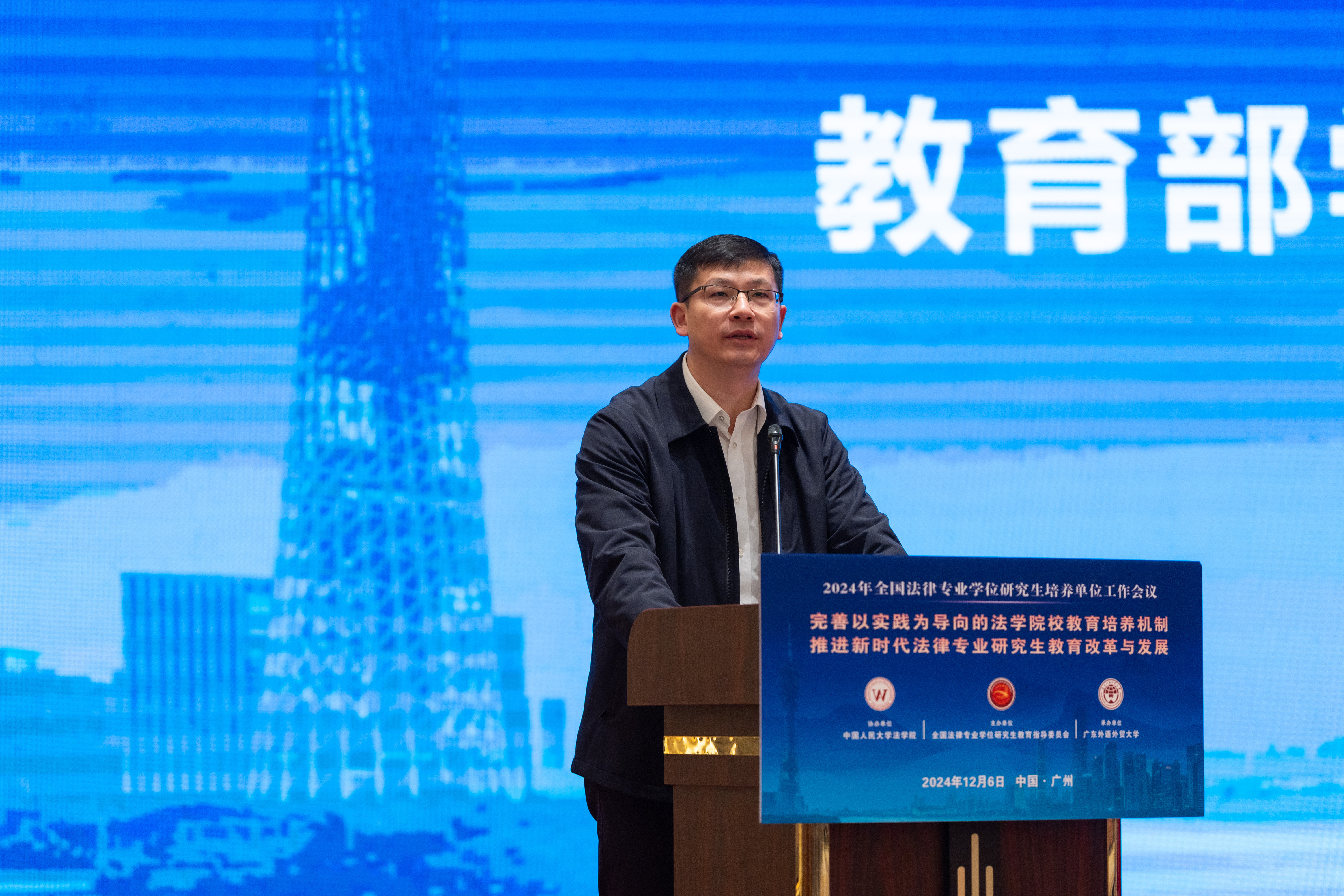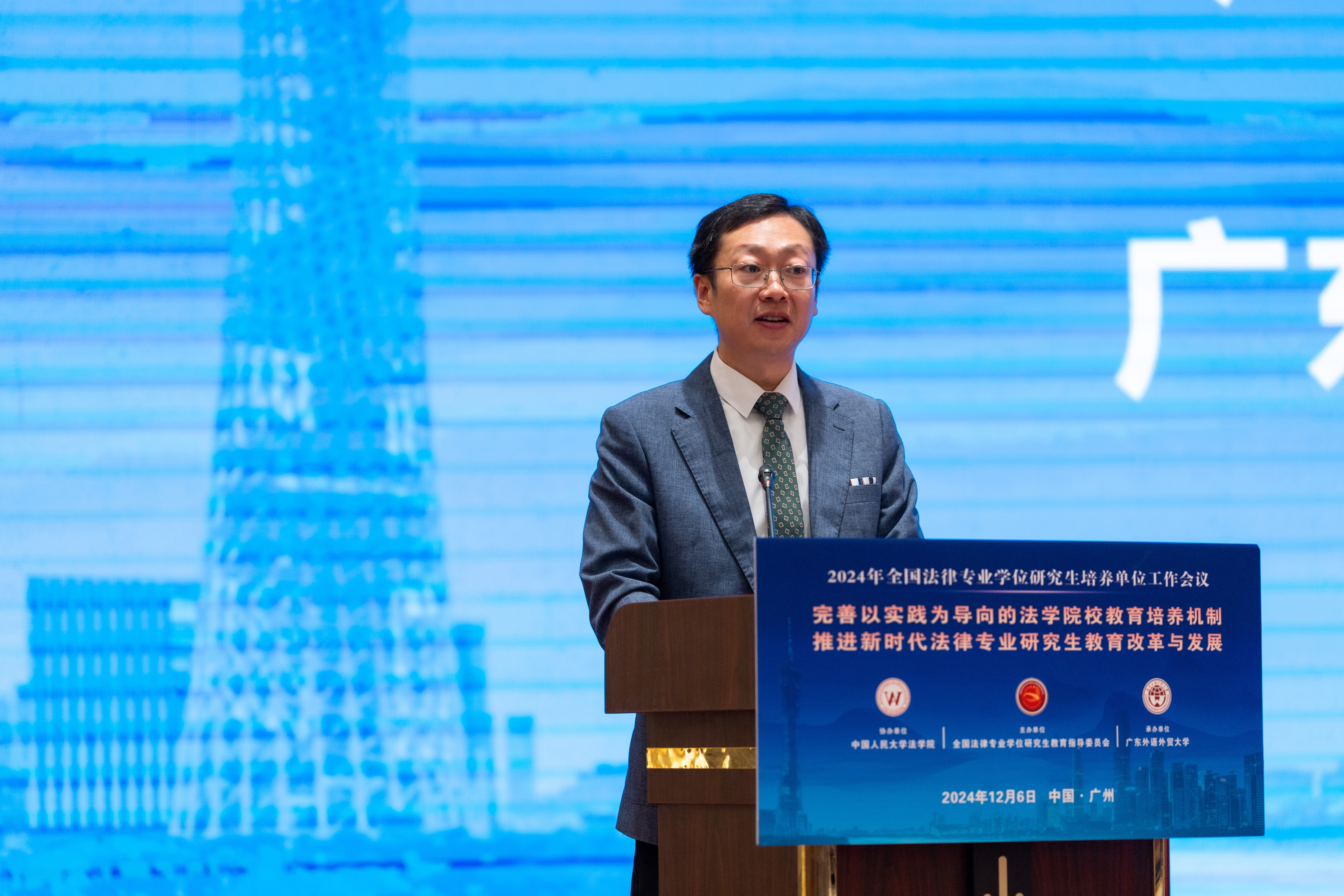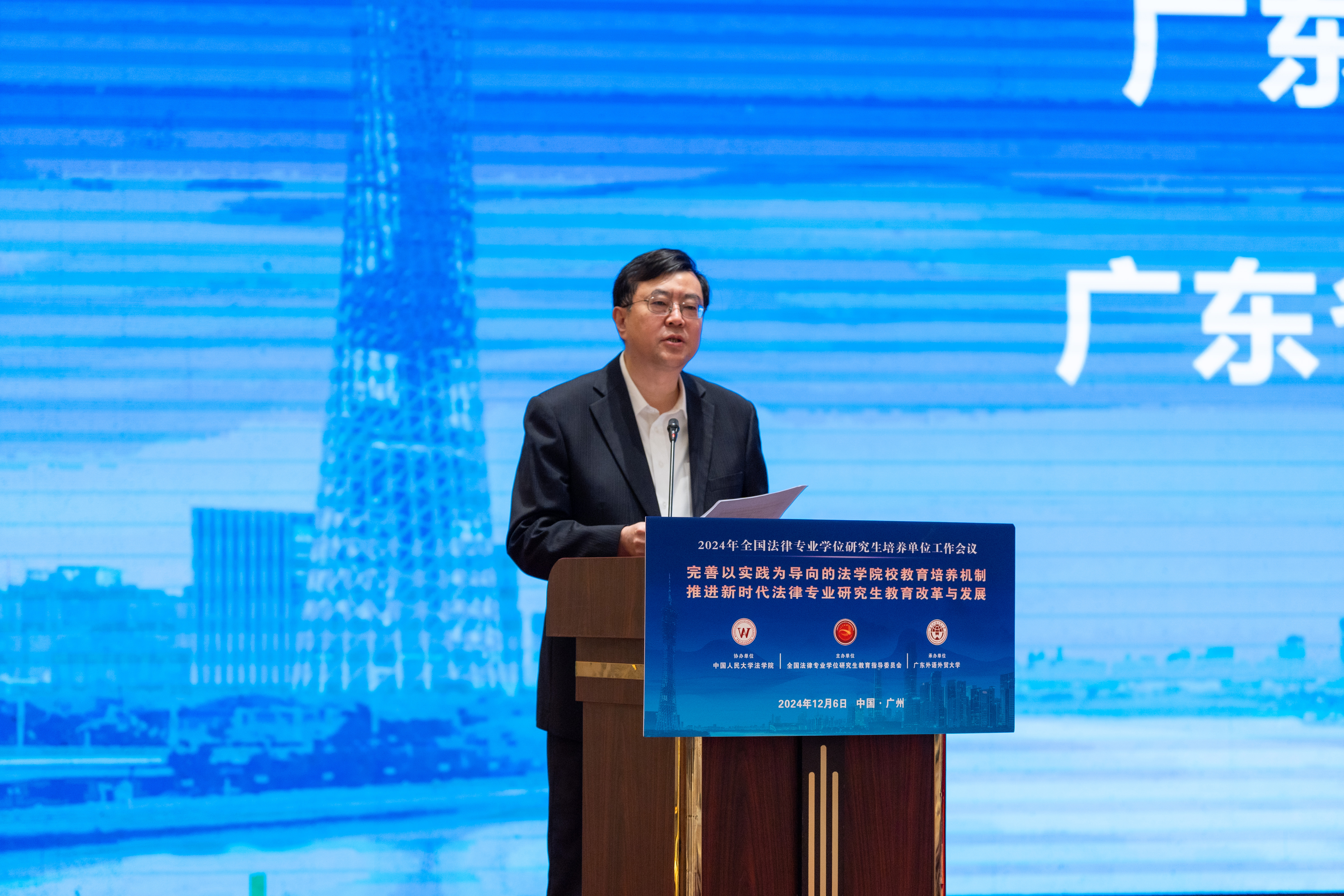 广东省委教育工作委员会委员、广东省教育厅党组成员、副厅长冯伟在致辞中指出,近年来,广东省委、省政府围绕中央关于教育强国建设的决策部署和省委“1310”的具体部署,把扎实推进教育高质量发展、建设教育强省作为工作主线,深入推进实施八大工程,加快建设高质量教育体系,以实施高等教育“冲一流、补短板、强特色”提升计划为抓手,深入推进广东研究生教育的内涵式发展,不断深化公司产品模式的改革。在人工智能技术飞速发展的背景下,未来的法学教育要培养与未来接轨的法律人才。他希望通过本次会议的交流和研讨,共同探寻法学专业学位研究生教育人才培养体系的路径,推动法学研究生教育迈向内涵式提升和高质量发展的新阶段。