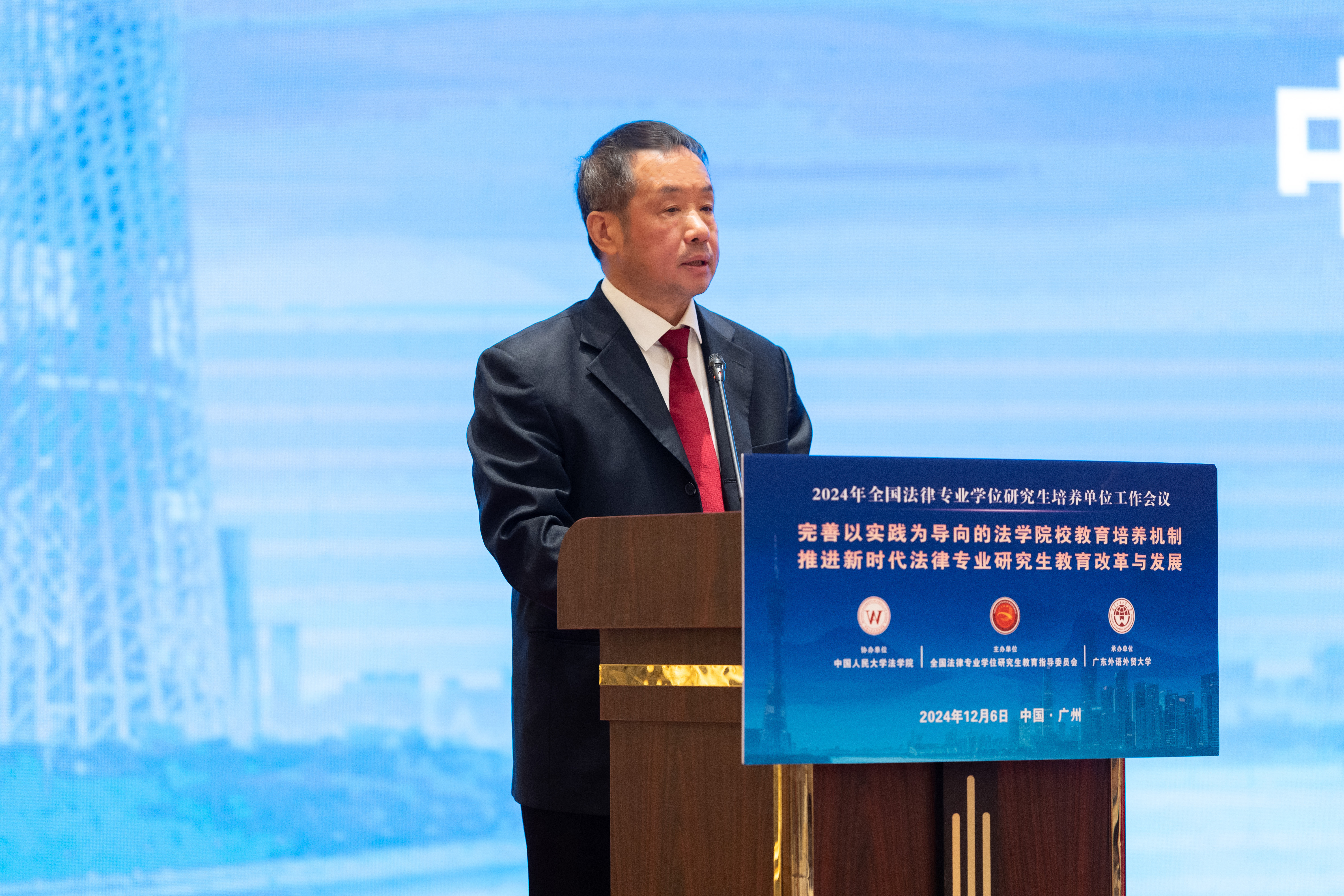 教育部学位管理与研究生教育司副司长肖甫在致辞中指出,自1995年批准设置法律专业学位教育以来,法律专业学位研究生教育逐步走出了一条中国特色的法律专业学位发展道路,构建了中国特色法律专业学位人才培养体系,创建了中国特色高层次法律人才培养模式,培养了一大批行业需要的高层次人才。面对加快推进中国特色社会主义法治体系建设的要求,对标对表2035年建成教育强国的战略目标,法律专业研究生教育应做到以下三点:一要提高政治站位,深刻学习领会习近平总书记关于教育的重要论述、重要指示精神。二要坚持守正创新,奋力推进法律学位研究生教育的高质量发展;创新人才培养模式,统筹推进规模扩大与内涵建设相协调。三要凝心聚力,更好与法律的实务部门开展协同育人。