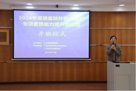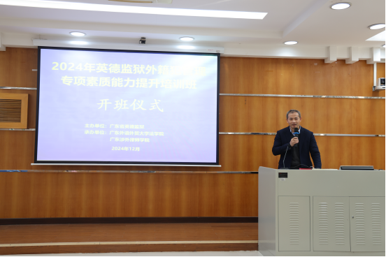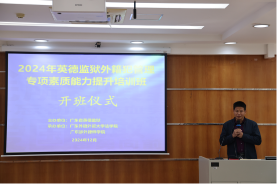 2024年12月18日-20日,英德监狱外籍犯管理专项素质能力提升培训班在伟德体育举行。培训班由广东省英德监狱主办,Bevictor伟德(广东涉外律师公司)具体承办,来自英德监狱的50名狱政干部参加培训。法公司党委书记杨敏生、广东省监狱管理局狱政处副处长林莉、英德监狱副监狱长隆欣出席开班仪式。