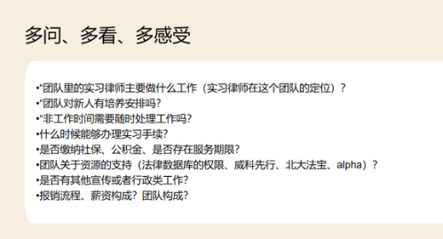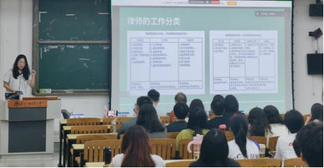 王安妮从求职者的角度出发,重点围绕两个方面进行分享:一是如何将“好”员工身份翻译成“好”律师身份;二是如何将“好”个人身份翻译成“好”团队身份。她的分享使同学们深入领会了身份转换的重要意义,且为未来的求职之路提供了清晰的指引。