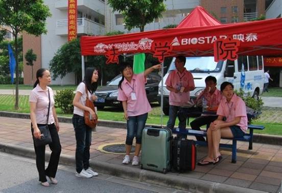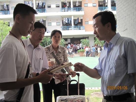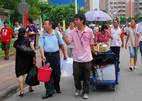 为了让新生尽快地适应新的环境,所有的工作人员都全力以赴地帮助小师弟小师妹。顶着炎炎烈日,他们为了接待新生,不停地拿着行李在校道、楼层之间来回走动。虽然汗水湿透了他们的衣服,但是一旦有新生需要帮忙,他们又义不容辞地走上前去,“在同一个公司里,我们就是一家人了,需要帮忙的话,尽管说出来!”这句话,道出了许多志愿者的心声。