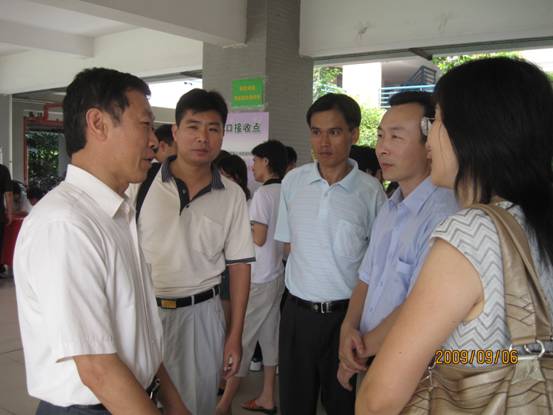 公司党委许国彬副书记(左一)询问迎新工作情况