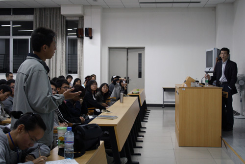 欣赏完陈老师从美国带回的图片资料后,同学们就2008美国大选后美国以及中美关系的发展趋势积极发表了自己的观点。陈老师强调,奥巴马作为民主党的一员,上任后不会摒弃民主党的传统“单干”,而是在传统的基础上加以改良,既发扬自由精神,同时延续保守作风。在中国的人大代表是否应该借鉴美国大选的问题上,他认为,各国应该探索和实行符合本国国情的民主制度,在这个过程中,相互学习和借鉴是可能的,但中国决不能照搬任何国家的政治制度。中国目前社会稳定,经济平稳增长,需要稳定的政治制度给予支持。在关于中国是否有能力邀请其他国家的学者来访,探讨我国选举制度的问题上,陈老师坦言中国目前的经济实力不及美国,在公共外交上的开支也不如美国,因此还不能拿出大量人力物力来实施相似的项目。不过美国学者和政府官员的确也受到中国的邀请来观摩村民选举。