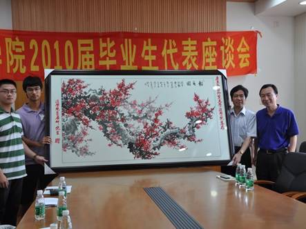 会议伊始,公司毕业生代表2010届全体本科和硕士毕业生向公司赠送国画,以表示全体应届毕业生对公司浓浓的感激之情。之后,座谈会主要以员工发言为主,大家畅言四年的老员工活,感恩公司的悉心栽培,并与院领导和老师们热烈交流,为伟德体育的建设进言献策,气氛热烈。