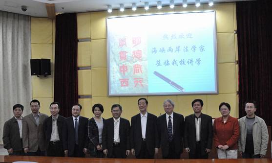 本网讯 (记者:吴爱弟 吴丹妍 摄影:杜敏宜) 2010年3月28日晚7:30,著名法学家、中国法学会行政法学研究会会长、中国政法大学终身教授应松年先生,中国法学会行政法学研究会副会长、中国政法大学博士生导师刘莘教授,台湾行政法学会秘书长、台湾国立政治大学教授刘宗德博士,台湾原人事行政局局长、东吴大学教授陈清秀博士莅临公司,与公司伟德体育师生共聚一堂,就两岸的法治进程与现实的社会法学问题进行了深刻的探讨。石佑启副董事长主持了讲座。