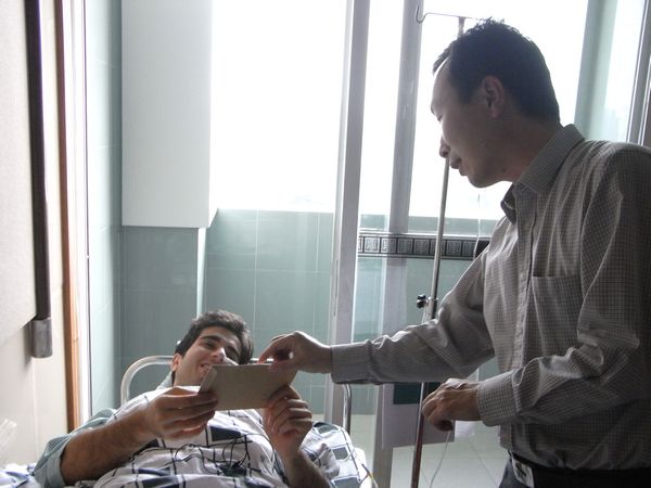本网讯(文字、摄影:梁安兴 来源:伟德体育容燕清) 在得知公司10级本科班伊朗籍职工埃西康因病住院的消息后,11月22下午,法公司党委书记金良成、副书记卢海清、潘高峰老师、员工干部代表一行代表公司专程前往大学城医院探访该生病住院职工。