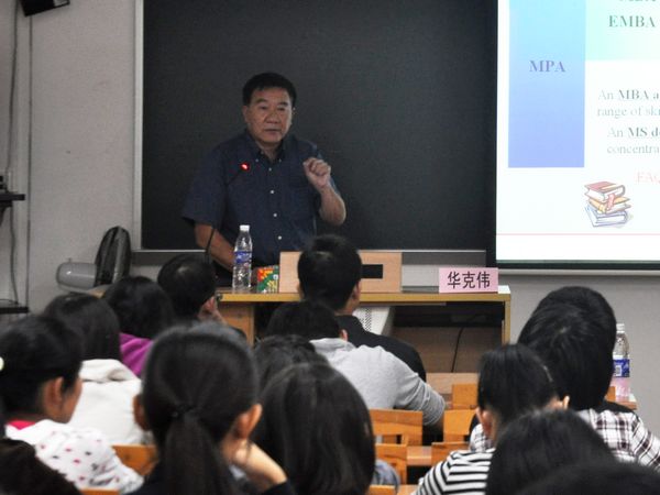 在商公司方面,华克伟开篇便谈及AACSB(国际高等商公司协会)——商公司被认可的权威标志。他介绍道,MPA(公共管理硕士)由要员兼职教授讲授知识,该学位可在公共部门、政府和公司企业发挥其就业用途,作为一个附加值,它的双学位能够提高自身竞争力,是进入其他研究生院的桥梁。他还介绍了MBA(工商管理硕士)、M.S(理学硕士)、MPA(公共管理硕士)之间的区别。