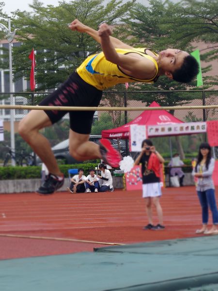 08法五的李亚兵和10外交的周建烨代表公司出战男子跳高比赛。李亚兵表现尤为出色,轻盈地征服了一个个高度,并向1.90m的高度发起挑战,但遗憾触杆,没有成功,但还是以1.85m的绝对优势夺得冠军。另一位选手周建烨则以最终成绩1.60m取得第七名。