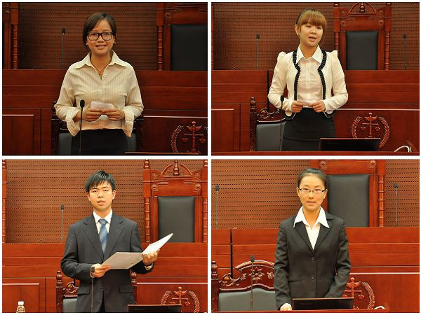 首先进行汇报的是09法四的黄嘉诺同学。在汇报中,她首先从言行举止和思想修养两个方面介绍了自己在向党组织靠拢的过程中,思想从老员工到党员的转变。而在学习上和工作上,她用自己的实际行动践行着全心全意为人民服务的宗旨。面对自己的不足之处,她希望得到党组织的批评指导以做得更好。在答辩环节中,她更出色地回答了答辩委员会关于建设幸福广东、东莞中学斗殴事件和她本人对未来的规划等的现实问题,赢得了观众一片掌声。