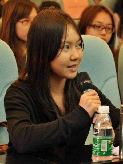 随后进行汇报的09法三林梦洁同学通过对比自己在向党组织靠拢前后的成长经历,如成为预备党员后,主动加入法律援助中心热心帮助有需要的人等,形象生动地反映出了党在思想、学习及工作上对她的积极影响。在指出自己的不足后,她也表达了党组织能在实践中不断考验她的愿望。在答辩环节中,面对建设幸福广东的问题,她巧妙地从广外建设入手,从四个方面阐述她的意见,以小见大,以点带面,表现可圈可点。
