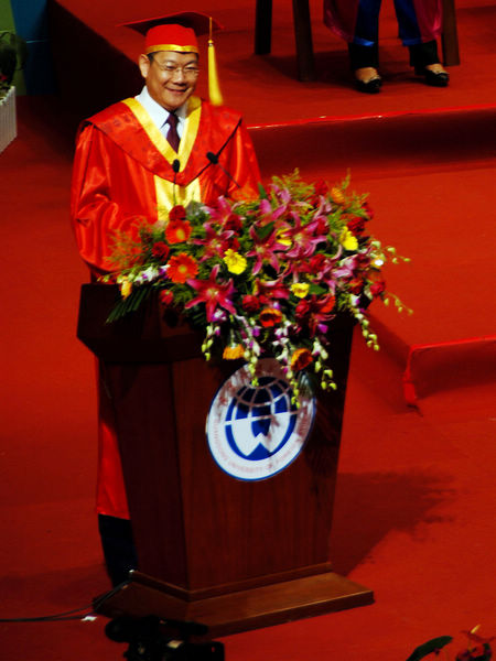 首先,仲伟合董事长在开幕致辞中代表全体师生对毕业生表示祝贺,并建议毕业生“三送掌声”给父母、老师以及同学。致辞中,仲董事长连用数个“放不下”、“忘不了”表达了母校对毕业生的深情,并提及了公司模拟法庭、第一位空军飞行员孙行和屡创新高的司考佳绩,掀起了全场如雷的掌声。“左手理想,右手坚强”,仲董事长还期望毕业生“要多一点耐心,不妨‘让子弹再飞一会’”。最后,仲董事长以一句英文I can't wait to see how you all turn out. Do come back,from time to time,and let us know.结束他慷慨激昂的致辞。