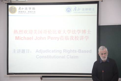 ,美国埃默里大学教授Michael John Perry教授做客伟德体育,并在六教B206为公司法律硕士研究生和4+0法律本科生做了主题为“Adjudicating Rights-Based Constitutional Claims”的讲座。讲座由杨桦副教授主持,常廷彬教授、宁少媛老师、香港城市大学王书成教授等出席了讲座。