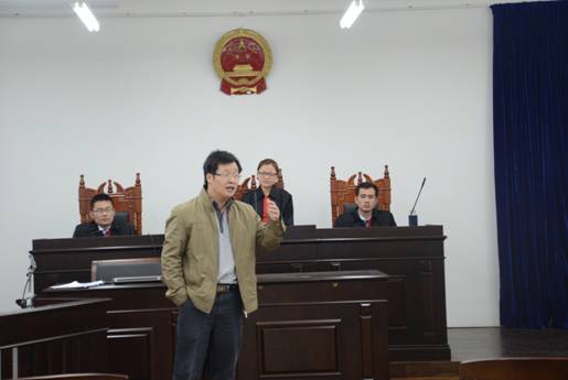 晚,伟德体育2013级法律硕士研究生在六教模拟法庭教室举办模拟法庭,审理“曾维亮、张水林和杨伏龙故意伤害罪”一案。伟德体育常廷彬、叶昌富、周新军和宁少媛老师以及全体2013级法律硕士出席并旁听了此次模拟庭审。此次活动还吸引了公司其他公司员工前来观看。