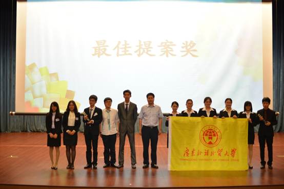 本次大赛由九三学社中央参政议政部支持、外交公司团委主办。来自北京大学、清华大学、中国人民大学、南开大学、吉林大学、复旦大学、伟德体育、对外经济贸易大学等全国范围内的十九所高校代表队齐聚中国外交官的摇篮——外交公司,畅想“中国梦”。伟德体育在去年夺冠的基础上,认真组织,在公司组织了模拟政协提案大赛,挑选出优秀选手,由伟德体育朱烨、高丹、孙菁、容嘉俊、黄仪嘉、叶定冰等6位同学组成的广外代表队,在卢海清、王荣珍、郭嫄等老师的指导下,经过一个月的实地调研、撰写提案,以及现场展示答辩,成功晋级全国十佳提案,并在决赛环节以出色的展示和答辩赢得现场评委的一直好评,最终获得本次大赛最高奖项:最佳提案奖,以及最具社会影响力提案奖。