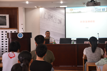 讲座伊始,徐检指出:司法就是一种判断,讲究一种经验的积累,经验对于司法实践是至关重要的。然后,他就李小军故意杀人、邓巧巧窝藏案,林志光交通肇事案,曾昭鹤玩忽职守案及其刘俊荣盗窃案从基本案情到证据情况再到最终裁决均做了详尽而深入的阐述,并就其中的主要争议点阐明自己的观点。在互动阶段,徐检、肖检、杨主任对同学们提出的问题一一作答。