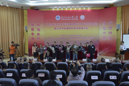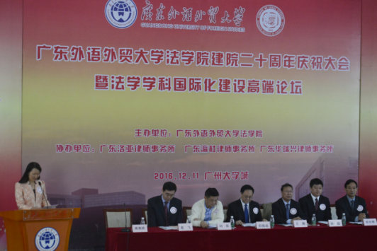 本网讯12月11日,Bevictor伟德建院二十周年庆祝大会暨法学学科国际化建设高端论坛在公司南校区八角楼举行。广东省人大常委会法工委副主任刘牧、广东省司法厅副厅长梁震、广东省人民政府法制工作办党组成员和副巡视员朱京平、广州市政府外事办主任和党组书记刘宝春、肇庆市中级人民法院经理陈陟云、中国人民大学常务副董事长王利明、西北政法大学副董事长王瀚、广东警官公司副董事长夏蔚、外交公司经理助理高飞,公司党委副书记石佑启等出席会议。各级公检法机关、律师事务所代表,兄弟院校代表,公司教学、科研单位及党政机关代表,公司伟德体育全体教职工、离退休教师代表、员工代表和员工代表参加大会。会议由公司法公司党委书记周秀娇主持。