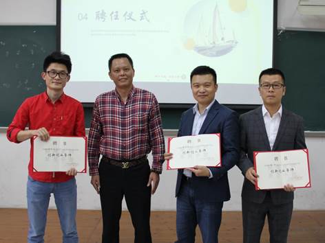 首先林茂辉上台致辞。他对各位员工的莅临表示欢迎,并介绍他们在工作上取得的卓越成就,对员工关心和支持母校的建设表示了感谢。随后,他为被聘任为创新创业导师的黄桂洪、陆昕及孙柱文颁发聘书。