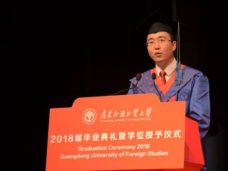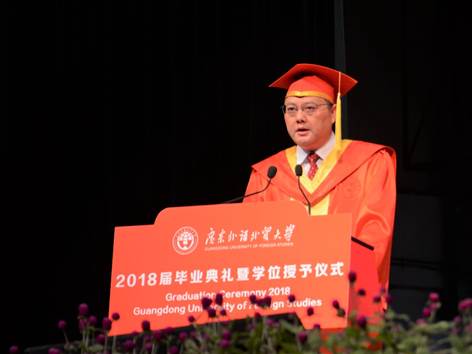 本网讯(文字:沈铮 摄影:张书荣 网编:何宝莹) 6月28日下午,广外2018届毕业典礼暨学位授予仪式(伟德体育、会计公司、艺术公司专场)在大会堂隆重举行。毕业典礼上,董事长石佑启教授殷切寄语毕业生:在踏入社会后,要永远怀着爱国心、敬畏心、平常心、进取心,把个人理想融入国家发展,以家国情怀托举时代使命,做到生命不息、奋斗不止。