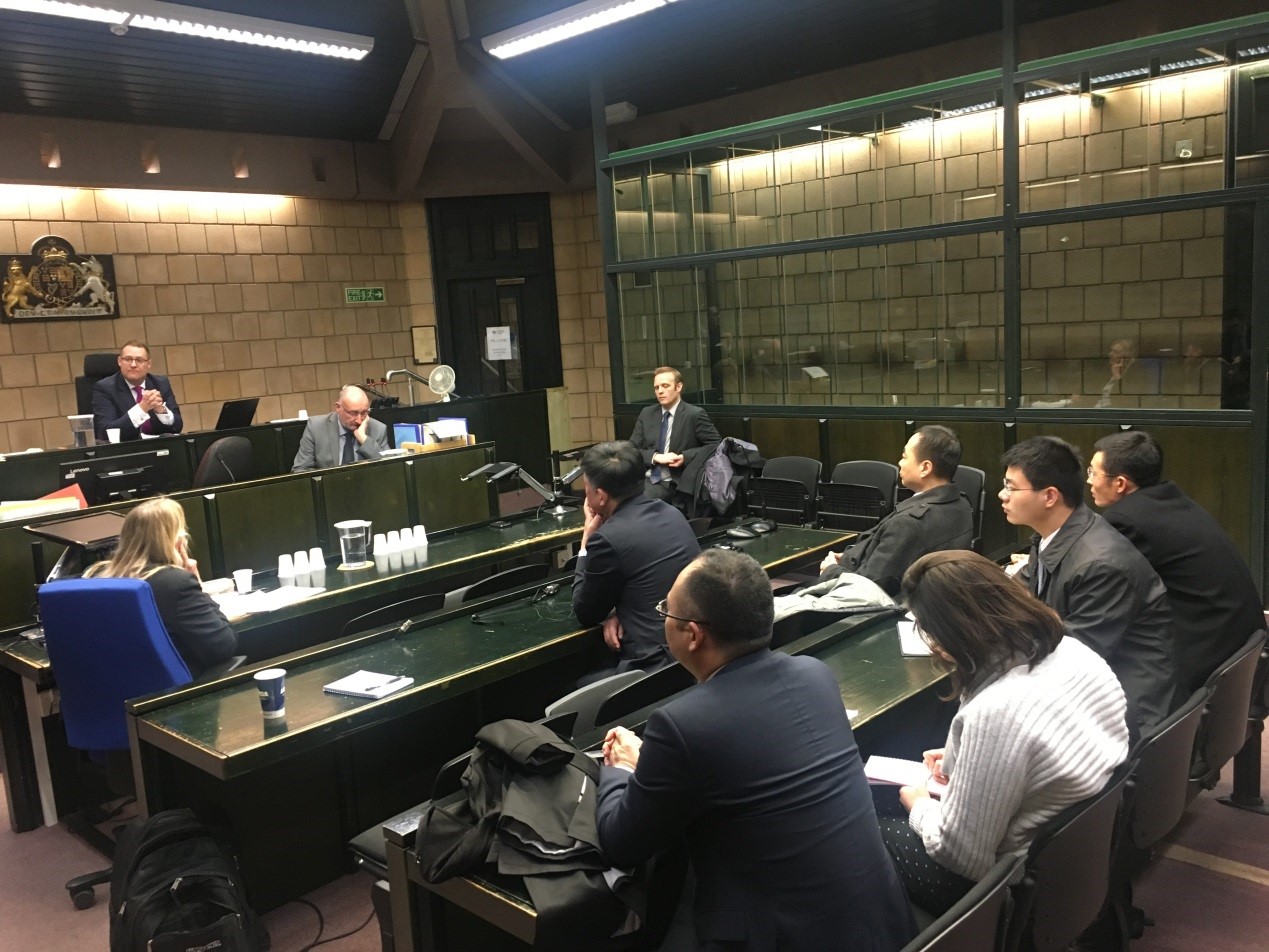 11月27日上午,代表团到布里斯托治安法院观摩了五起案件。期间,与治安法院Matthews和Cooper法官,以及出庭的检察官、律师就法官遴选条件与机制、律师申请保释的条件与流程等话题进行了深入交流。