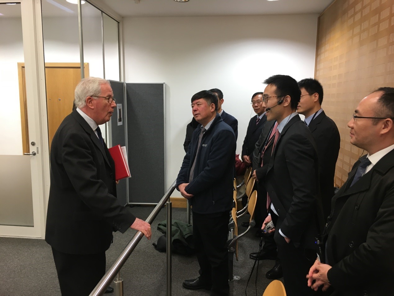 11月23日,代表团乘车前往梅德韦地区治安法院实地观摩庭审。梅德韦地区治安法院是英国较早使用视频出庭系统的试点法院之一,代表团观摩的七起案件有六个是通过视频出庭系统开庭的。庭审结束后,代表团与Paul Goldspring法官、出庭检察官及Luke Meyer律师进行了座谈,就视频出征应用存在的问题、保释庭审的证据质证问题、扰乱法庭秩序的现场处理等问题进行了深入的交流。公司教师周新博士就检察官如何评估保释风险问题与出庭检察官进行了专题交流,并会后代表全体代表团成员为Paul Goldspring法官赠送纪念品。