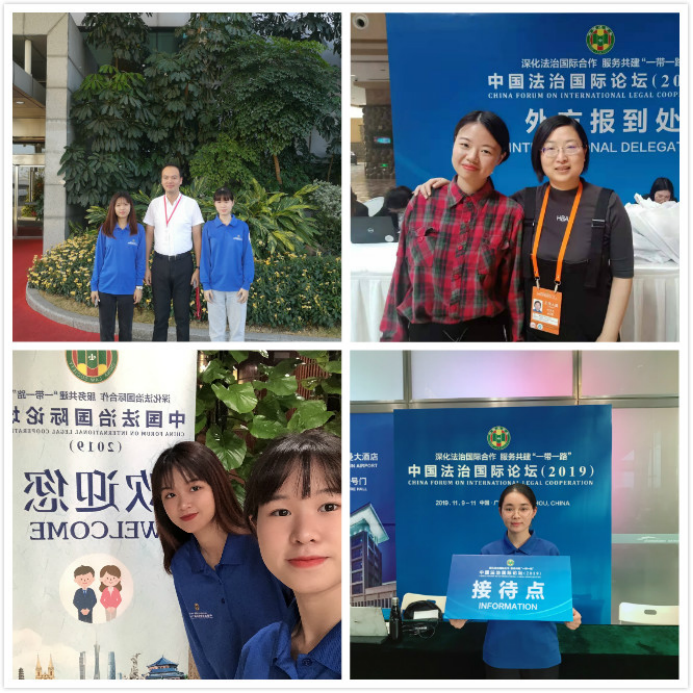 本网讯(文字:姚菁菁)2019年11月10日至11日,中国法治国际论坛(2019)在广州举行,来自中国及一带一路沿线的40余个国家、4个国际组织约400余名代表参加论坛,国家主席习近平致信祝贺论坛开幕。论坛期间,公司共选派50名志愿者参与论坛一线工作,他们以出色的外语能力、高度负责的工作态度,助力本次活动圆满完成。