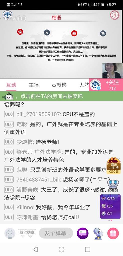 临近高考之际,为进一步帮助广大考生和家长对伟德体育法学专业有更加全面的认识和了解,在校招办的组织下,公司于5月30日晚在bilibili视频网站举行了一场以“建设国家一流法学专业,培养国际化卓越法治人才”为主题的线上宣讲直播,充分运用互联网技术平台为广大考生和家长答疑解惑。本次直播由公司副经理杨帆教授进行讲授,法公司党委副书记刘军、系主任张爽、梁晨、杨浩楠、卢纯昕以及院办等老师参与了此次直播。
