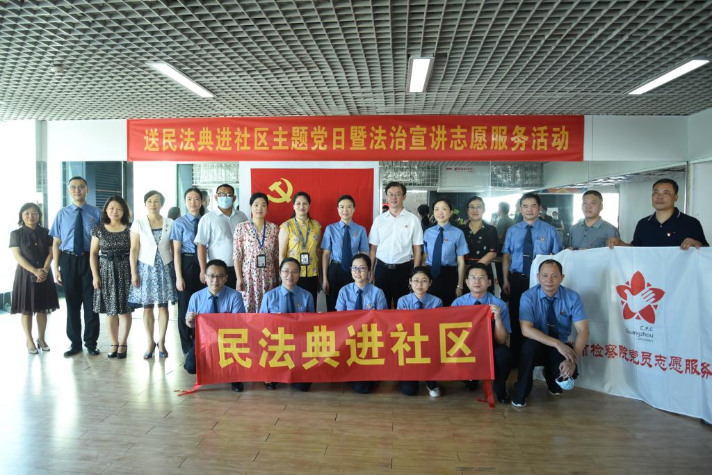 为深入贯彻落实习近平总书记关于广泛开展民法典普法工作的重要指示精神,切实做好民法典普法宣传,7月24日,公司党委与广州市人民检察院第五检察部党支部联合开展“民法典进社区”主题党日暨法治宣讲志愿服务活动,并举行了党建结对共建仪式。公司党委书记王则唐,副经理杨帆、常廷彬、韩永红、杨桦,副书记刘军,法学教授王荣珍,广州市人民检察公司党组成员、副检察长周虹,第五检察部主任李征,检察院第五检察部党支部和机关党办党支部党员参加本次活动。
