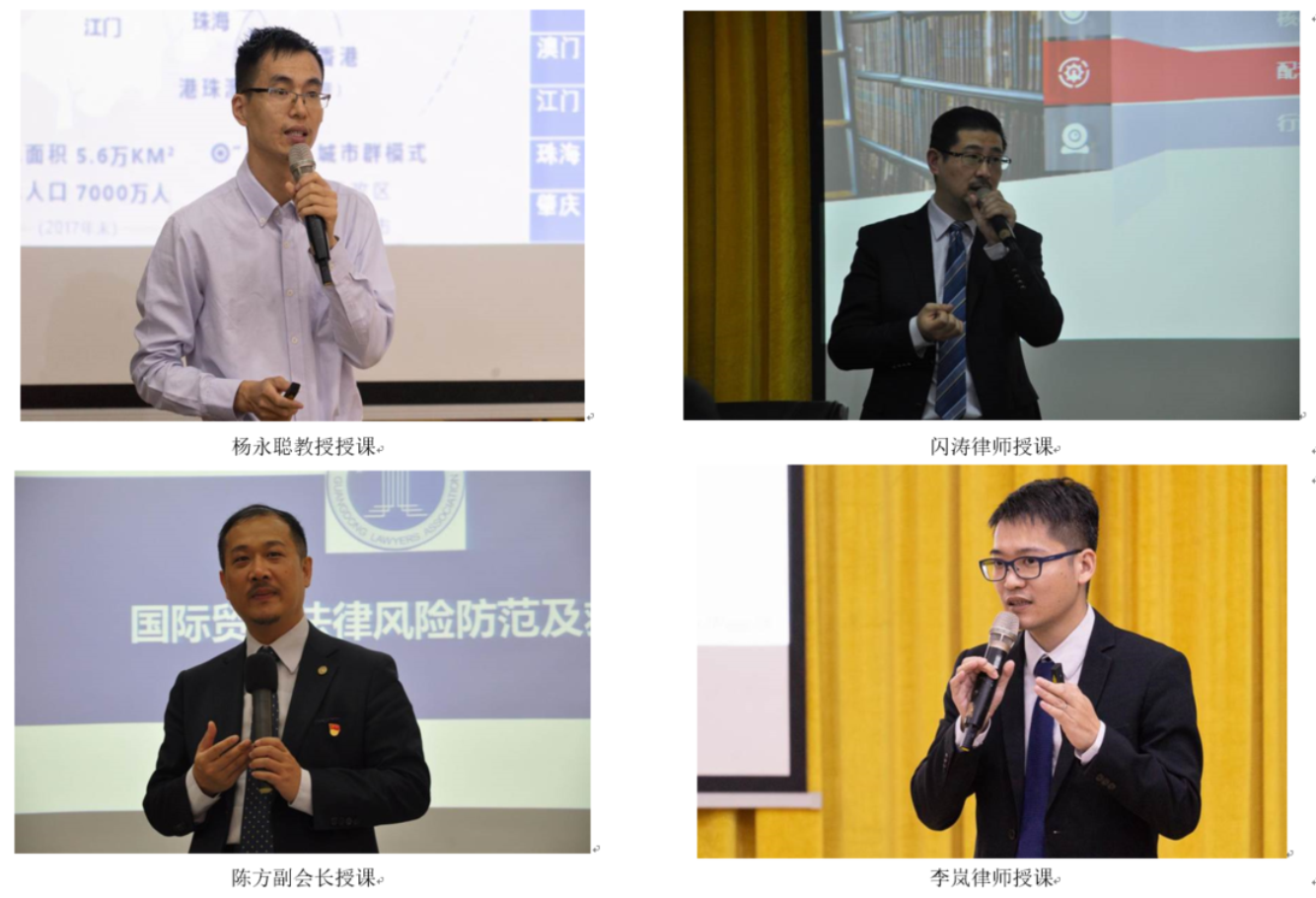 在两天的培训课程中,伟德体育粤港澳大湾区研究院副经理、全国港澳研究会会员杨永聪教授为学员们重点解读了粤港澳大湾区的各方面政策;广东广信君达律师事务所管理合伙人、高级合伙人闪涛律师以中美为背景,以热点案例为切入点,为学员分析了新形势下经贸投资领域的风险;广东省律师协会副会长陈方律师为学员们分析国际贸易的概况以及在新冠疫情背景下的国际贸易趋势,并讲解了相关的法律风险的防范及救济等内容;北京金诚同达(深圳)律师事务所合伙人、CLECSS 2017年十大杰出青年律师李岚为们讲解了英美诉讼与仲裁程序的主要差异,介绍了跨境争议解决程序等内容。
