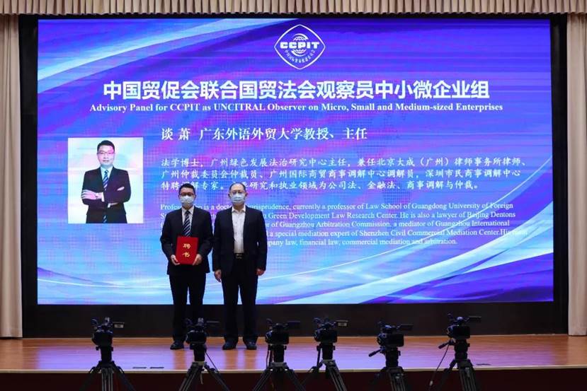2020年12月22日,中国贸促会联合国贸法会观察员专家团成立大会在北京举行。会上公布了中小微企业组、争议解决组、投资争端改革组、电子商务组、破产法组、司法拍卖船舶组共六个小组的59名专家团名单。公司韩永红教授、谈萧教授受聘担任中国贸促会联合国贸法会观察员专家团成员。其中韩永红教授受聘第二工作组(争端解决),谈萧教授受聘第一工作组(中小微企业)。聘期自2021年1月1日至2023年12月31日。谈萧教授以现场形式、韩永红教授以在线形式参加了当日的成立大会和聘任仪式。