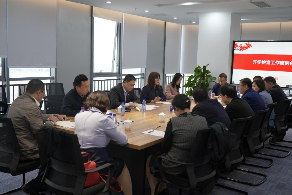 3月1日,公司党委书记隋广军率队在知识城校区检查指导公司新学期工作,组织部部长车小真、研究生部部长金良成、人事处副处长李乐玲、校办副主任余泽浩陪同检查,公司全体党政领导班子参加会议。