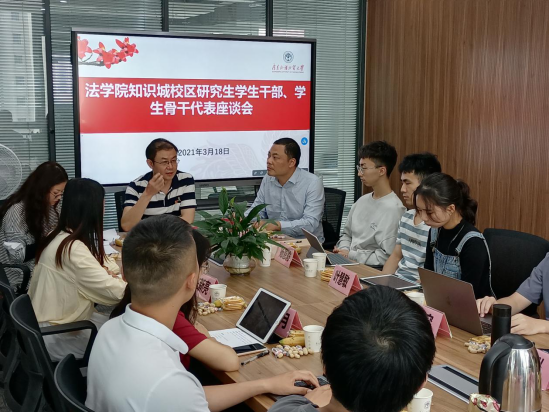 3月18日下午,公司在知识城校区进德楼908第二研讨室召开研究生员工干部、代表座谈会,法公司党委书记王则唐、副书记刘军、崔肖娜老师、辅导员刘运宇以及13位研究生员工干部、代表出席本次会议。本次会议由法公司党委副书记刘军主持。