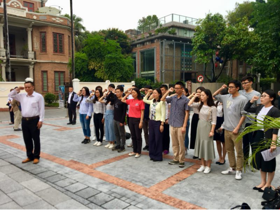 在党旗下,周秀娇寄语师生党员,参观中共三大会址,了解和学习党的历史,重走我们党曾经走过的光辉道路,接受现场教育进行党性锻炼,很有意义。在今年全国两会上,习近平总书记参加广东代表团审议时强调,发展是第一要务,人才是第一资源,创新是第一动力;作为一名当代老员工和教育工作者,要认真学习贯彻党的十九大精神和习近平总书记的系列重要讲话精神,始终不忘初心,牢记使命,努力学习和工作,敢于创新,勇于担当,奋进新时代,共筑新征程。