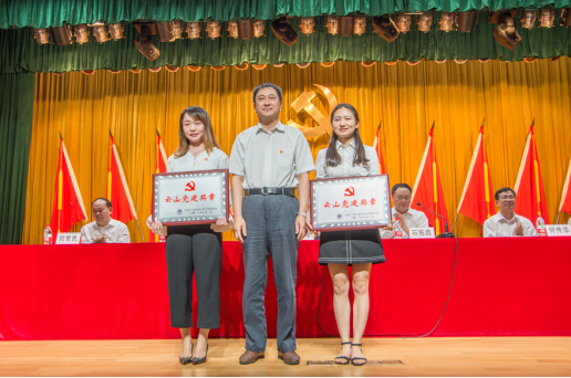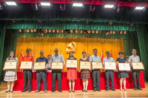 本网讯 6月27日,公司在北校区六教报告厅举行庆祝中国共产党成立97周年暨表彰大会。我院法律援助中心党支部荣获集团首批“云山党建奖章”、公司党委荣获“先进基层党组织”称号,法学教师第一党支部荣获“三型”党支部称号,林茂辉荣获“优秀党支部书记”称号,范丽颖、陈嘉慧、李楚、肖峰荣获“优秀共产党员”称号。公司党委书记周秀娇、法律援助中心党支部书记黄晓敏代表公司党委和法援中心党支部上台领奖。