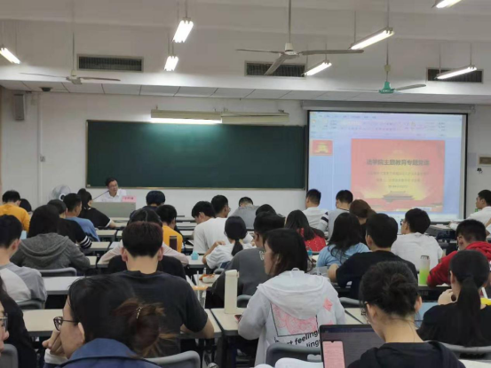 王则唐结合时代背景和学科要求,向伟德体育学子们讲授了内容丰富又充实的“思政第一课”,为他们争做新时代背景下德才兼备的卓越法治人才打下了坚实思想基础。